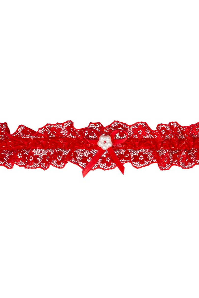 Podwiązka wykonana z delikatnej koronki, ozdobiona koralikiem, idealna na studniówkę i nie tylko Skład 100% poliester.