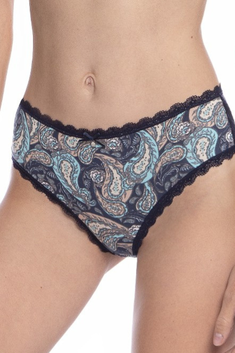 Figi damskie bawełniane, wykończone koronką. Skład: 95% bawełna, 5%elastan.