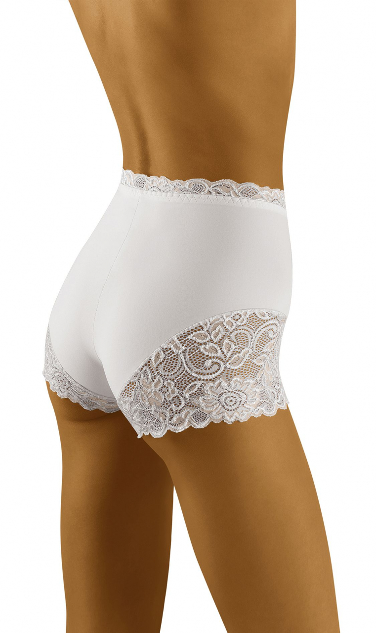 Miks kobiecości i wygody. Wyższy krój, koronkowe nogawki, koronkowa lamówka w pasie... Te szorty zostały stworzone z myślą o kobietach, które cenią sobie bieliznę o wyższym, bardziej zabudowanym kroju. Wygodne i komfortowe, subtelnie modelują ciało. Z przodu i z tyłu - gładkie. Skład: 87% poliamid, 13% elastan.