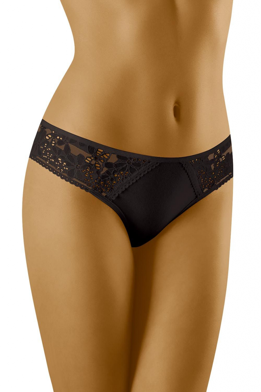Wygodne figi z pięknym, kwiecistym zdobieniem wokół bioder. Skład: 90% bawełna, 7% elastan, 3% poliamid.