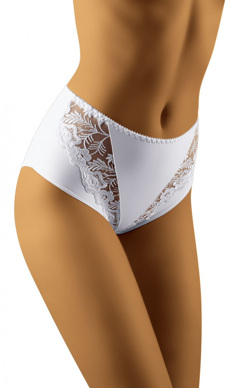 Gabe to nieco pełniejsze figi, które doskonale przylegają do ciała, elastycznie je modelując. Zupełnie gładki tył i przód przeszywa dekoracyjna koronka, zalotnie przebiegająca w przedniej części kompozycji. Duże, delikatne kwiaty o pięknie rozkwitłych pąkach to coś co staje się tutaj inspirującym i wyróżniającym elementem, wprowadzającym niesamowity, bardzo kobiecy wygląd. Wygoda połączona z eleganckim wdziękiem.