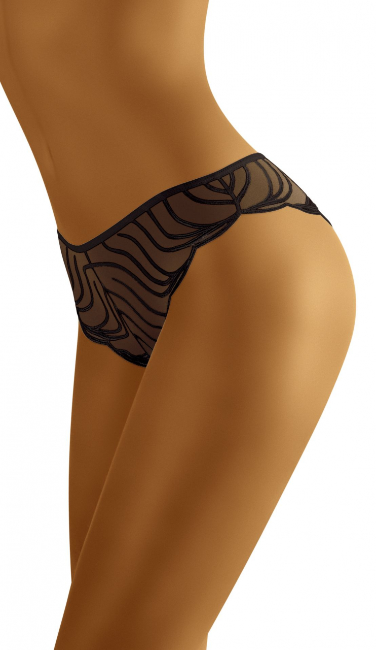 Figi Soleare to prawdziwy wdzięk ukryty w zmysłowych, haftowanych aplikacjach. Figi są kusząco półprześwitujące a ponad to posiadają ładnie ładnie wyprofilowaną linię kroju. Wysoka jakość. Skład: 83% poliamid, 17% elastan.