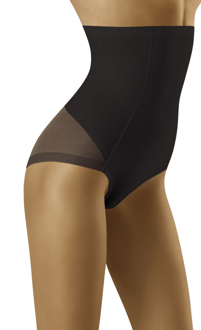 Gładkie, modelujące sylwetkę, wysokie figi z elementem prześwitu. Wyposażone w delikatne, silikonowe wzmocnienie w górnej części, dzięki któremu figi nie zsuwają się z ciała. Fajnym pomysłem są prześwity po bokach bioder (i na pośladkach) - przełamują utarte standardy, pokazują, że bielizna, która potrafi wysmuklić i poprawić linię ciała może być także kobieca, delikatna i nieco sexy. Polecamy! Skład: 58% poliamid, 42% elastan.