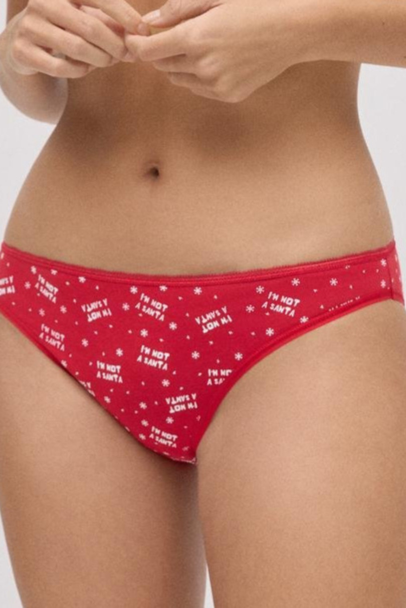 Czerwone figi damskie z nadrukiem „I’m not a Santa” to propozycja dla kobiet, które lubią połączenie komfortu z odrobiną humoru. Wykonane z miękkiej, oddychającej bawełny z dodatkiem elastanu, doskonale dopasowują się do sylwetki i gwarantują wygodę przez cały dzień. Świąteczny motyw z napisem i drobnymi śnieżynkami dodaje bieliźnie uroku, a klasyczny krój zapewnia swobodę ruchów i idealne dopasowanie pod codzienne stylizacje. To idealny wybór na zimowy sezon – zarówno jako codzienna bielizna, jak i świąteczny prezent. 80% Bawełna, 20% Poliester