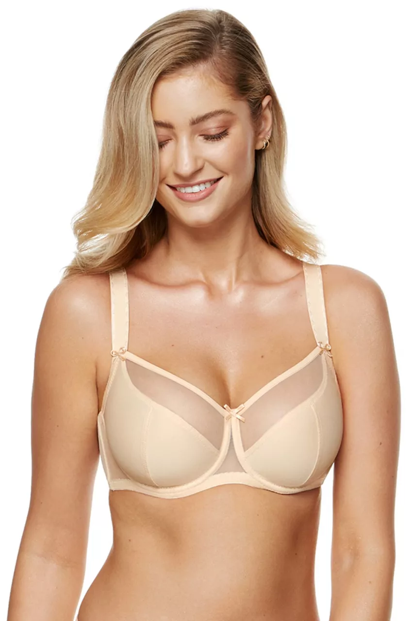 Trzyczęściowe miski z dzianiny oraz tiulu, Tył biustonosza wykonano z wzmocnionego tiulu, Szerokość ramiączek wzrasta wraz z rozmiarem biustonosza, Ramiączka podszyte miękkim laminatem w rozmiarach MAXI, Pionowe fiszbiny boczne stabilizują obwód biustonosza, Biustonosz zaprojektowano i uszyto w Polsce, W celu utrzymania bielizny w dobrej kondycji przez długi czas zaleca się delikatne pranie ręczne w temperaturze 30°C.