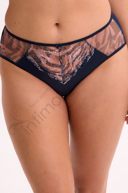 Biustonosz semi-soft Sienna Art. 1329 to wyjątkowo kobiecy model, który łączy klasyczny granat z delikatnym różowym haftem o florystycznym wzorze. Półusztywniane miseczki pięknie modelują i unoszą biust, zapewniając jednocześnie komfort i doskonałe podtrzymanie. Górna część miseczek wykonana została z transparentnego tiulu, ozdobionego efektownym haftem, co dodaje bieliźnie lekkości i zmysłowego charakteru. Całość dopełniają regulowane ramiączka, stabilny obwód oraz elegancka ozdoba między miseczkami. Idealna propozycja na co dzień i na wyjątkowe okazje.