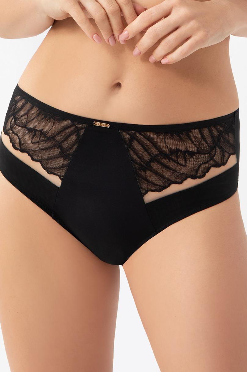 Średni stan Odsłaniają i podkreślają pośladki Wykonane z kryjącej microfibry połączonej z tiulem elastycznym i koronką Tył wykończony brzegiem koronki Metalowe elementy w kolorze jasnego złota (nie zawierają niklu) Bawełniany kroczek.