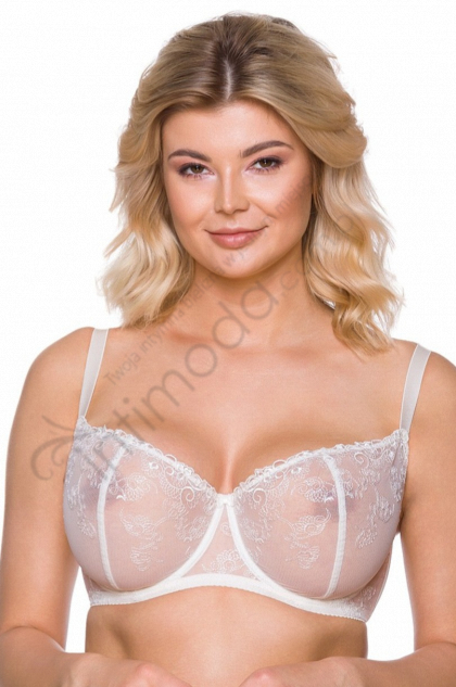 Figi niskie, typu brazyliany przód ozdobiony haftem, tył majtek gładki z podwójnego tiulu. Skład: 70% Poliamid, 20% Elastan, 10% Bawełna
