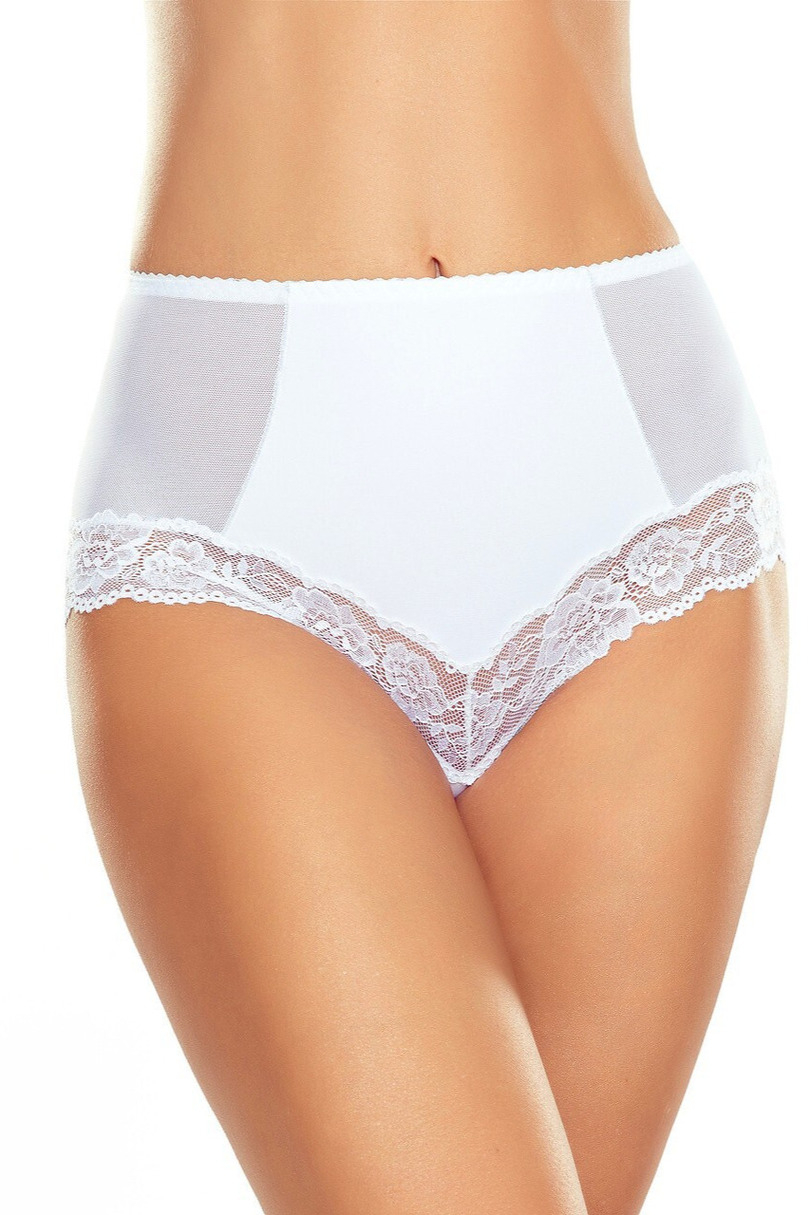 Eleganckie figi modelujące o wysokim stanie to idealne połączenie kobiecego stylu i funkcjonalności. Wykonane z miękkiej, elastycznej mikrofibry perfekcyjnie dopasowują się do sylwetki, zapewniając uczucie komfortu i gładkości przez cały dzień. Przód wzmocniony delikatną siateczką skutecznie modeluje brzuch, wysmukla talię i podkreśla kobiece kształty. Dół ozdobiony subtelną, kwiatową koronką nadaje bieliźnie wyjątkowo zmysłowy i elegancki wygląd. Figi idealnie sprawdzą się pod codzienne stylizacje i eleganckie kreacje, gwarantując piękny wygląd oraz wygodę noszenia.