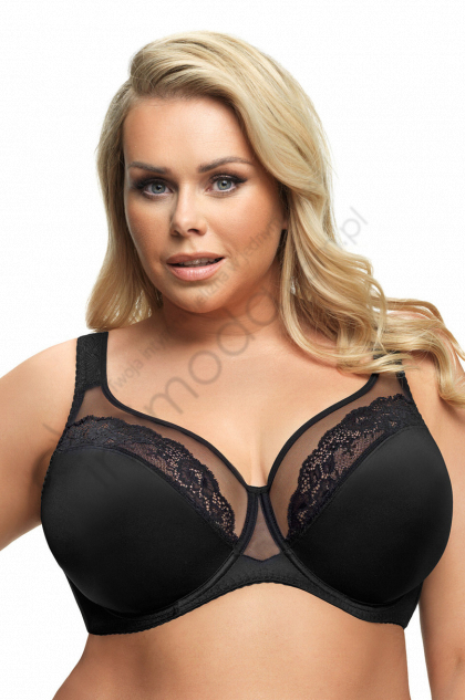 Biustonosz K 975 LATIKA (konstrukcja K 392) to miękki model zaprojektowany z myślą o kobietach ze średnim i dużym biustem, którym zależy na mocnym uniesieniu i zebraniu piersi do środka. Trójdzielne miseczki wykonano z eleganckiej koronki podszytej stabilnym tiulem, dzięki czemu biust otrzymuje solidne wsparcie przy zachowaniu lekkości i zmysłowego wyglądu. Górną linię miski wykończono elastyczną taśmą, a szwy subtelnie przykryto matową, satynową lamówką, co dodatkowo podkreśla staranność wykończenia.
