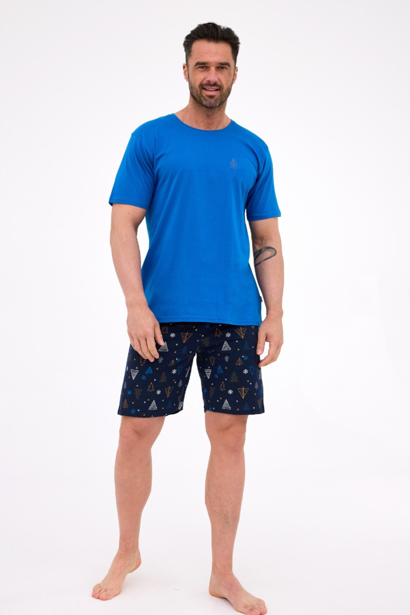 Stylowa i komfortowa piżama męska, idealna na relaksujące noce i chwile odpoczynku. Wykonana z wysokiej jakości bawełny, piżama zapewnia wygodę i przewiewność przez całą noc.Koszulka z krótkim rękawem, ozdobiona świątecznym printem, wprowadza w świąteczny nastrój i dodaje całości wyjątkowego charakteru. Krótkie spodenki z wzorzystym nadrukiem dopełniają całość, a elastyczna gumka w pasie zapewnia komfort i idealne dopasowanie. Piżama zapakowana w eleganckie pudełko, idealna na prezent.