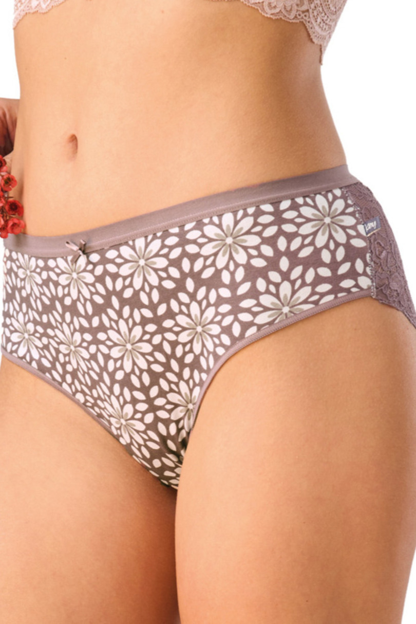 Eleganckie figi damskie wykonane z miękkiego, przyjemnego w dotyku materiału, który zapewnia wygodę noszenia przez cały dzień. Subtelny, kwiatowy wzór nadaje im kobiecego charakteru, a delikatna koronka po bokach dodaje lekkości i elegancji. Klasyczny krój doskonale dopasowuje się do sylwetki, nie krępując ruchów. Idealny wybór dla kobiet ceniących połączenie komfortu i estetyki w codziennej bieliźnie. Skład: 95% Bawełna, 5% Elastan