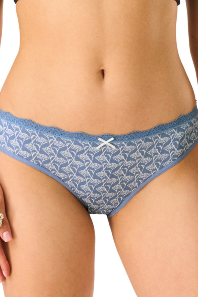 Stylowy i wygodny dwupak fig damskich marki KEY, idealny na co dzień. W zestawie znajdują się dwie pary majtek w pastelowych odcieniach niebieskiego, ozdobione delikatnym, roślinnym wzorem oraz subtelną kokardką z przodu. Figi zostały wykończone miękką koronką w pasie, co dodaje im kobiecego charakteru, a jednocześnie zapewnia komfort noszenia. Klasyczny krój dobrze dopasowuje się do sylwetki, nie krępuje ruchów i sprawdzi się pod każdą stylizacją. Bielizna KEY to połączenie wysokiej jakości materiałów, estetyki oraz wygody, której potrzebujesz każdego dnia. 95% Bawełna, 5% Elastan