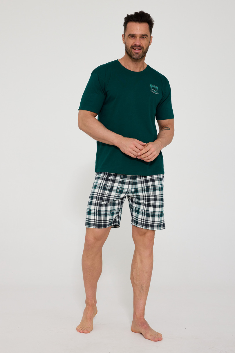 Piżama męska Cornette KR 326/212 Montana to klasyczny i wygodny komplet wykonany w 100% z wysokiej jakości bawełny. Naturalny, oddychający materiał zapewnia komfort snu, odpowiednią cyrkulację powietrza oraz przyjemne uczucie miękkości na skórze. To idealny wybór dla mężczyzn ceniących wygodę i ponadczasowy styl. Koszulka z krótkim rękawem posiada półokrągły dekolt, który gwarantuje swobodę noszenia i uniwersalny wygląd. Na piersi znajduje się subtelny, mały nadruk, nadający całości minimalistycznego charakteru. Komplet uzupełniają krótkie spodenki w klasyczną kratkę. W pasie zastosowano wygodną gumkę obszytą bawełną, która zapewnia dobre dopasowanie bez ucisku. To praktyczna i komfortowa piżama męska idealna na cieplejsze noce oraz do codziennego wypoczynku w domu. Skład: 100% bawełna.