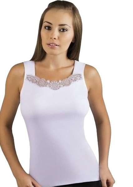 Koszulka damska z wysokiej jakości bawełny. Dekolt zdobi efektowna wstawka z gipiury. Skład: 100% bawełna.